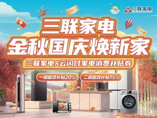 鲁网9月30日讯中秋国庆喜相逢,家电消费迎来黄金季。为迎接双节消费高峰,三联家电宣布从9月30日至10月8日推出“双节钜惠补贴”特别活动,本次活动联合山东省银联云闪付及多家一线家电品牌,通过多方补贴叠加、爆款直降、套购赠礼等方式,为消费者打造一场金秋购物盛宴。